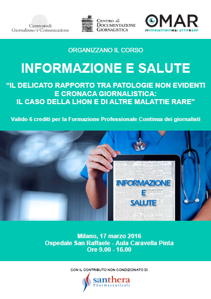 Per venire incontro alle esigenze di formazione in merito Osservatorio Malattie Rare, in collaborazione con il Centro studi Giornalismo e Comunicazione e il contributo incondizionato di Santhera organizza l’incontro “Il delicato rapporto tra patologie non evidenti e cronaca giornalistica: il caso della LHON e di altre malattie rare”, che si svolgerà il 17 marzo a Milano presso l'Ospedale San Raffaele, dalle ore 9 alle ore 16.