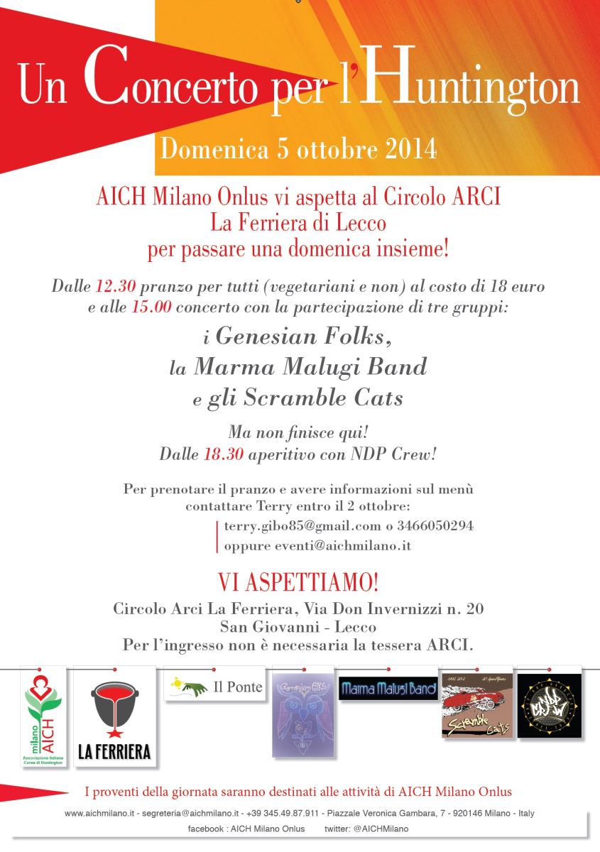 Il 5 ottobre, presso il Circolo ARCI La Ferriera di Lecco, si terrà "Un concerto per l'Huntington".